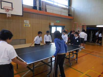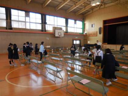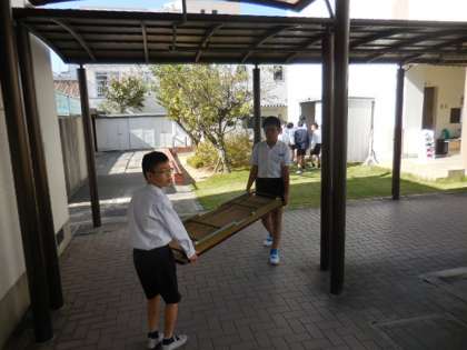 5年生児童の手伝いもあり、講堂会場の準備が整いました。