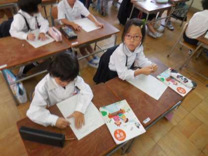 2組では、来週12日(火)に予定されている西淀川図書館の見学に向けての話し合いをしていました。だれに、どんなことをインタビューするのかについても各自で考えながらプリントに記入していました。