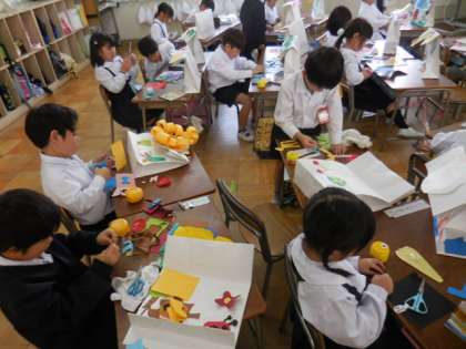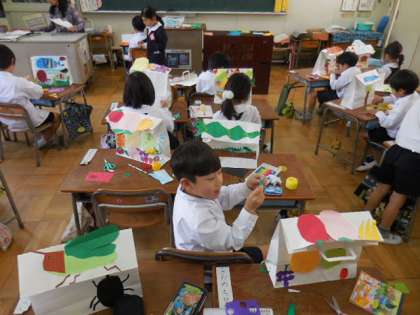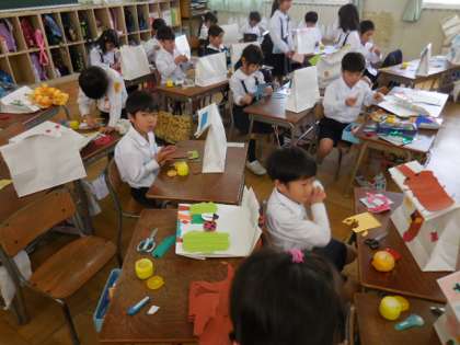 「すてき ! わたし・ぼくのリュックサック」というテーマで紙工作に集中していました。