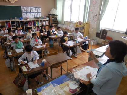 本校では、1・3・5年には、養護教諭が歯についての指導をしています。