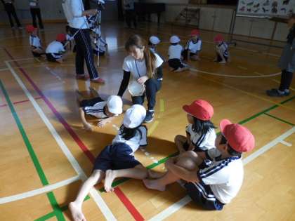 表現・リズム遊びの楽しさを十分に味わった授業でした。