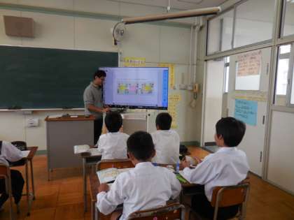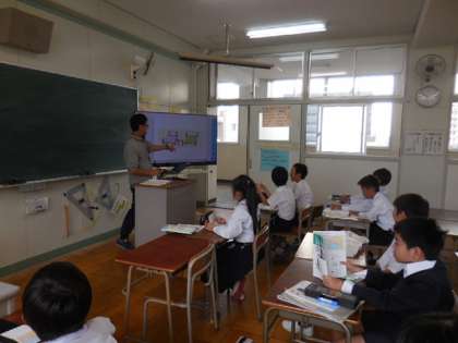 どちらの教室でも、学習の進度を合わせ、デジタル教科書等を使って進めています。