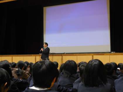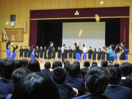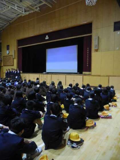 5小学校の6年生が一堂に、歌島中学校の講堂に集まりました。