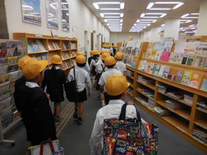先週に子どもたちに説明し班ごとに話し合いをして質問することなどを決めていた西淀川図書館見学に行きました。