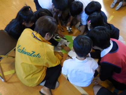 次は、つなごうタイムということで、各班ごとに与えられたジグソーパズルを協力して仕上げていました。
