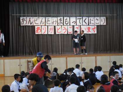 児童全員でこの言葉を復唱し、お礼の気持ちを伝えました。