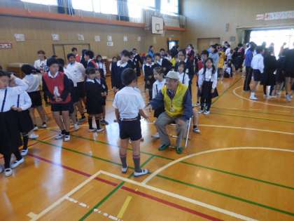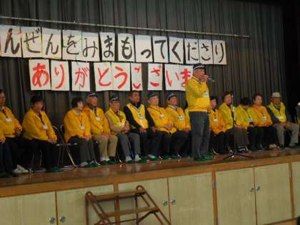 じゃんけんゲームで感謝の気持ちを一人ひとりが全員伝えた後、見守り隊の皆様にはステージ上にもどっていただき、見守り隊を代表して北山様からのお話がありました。