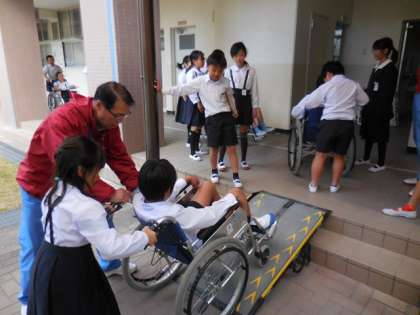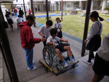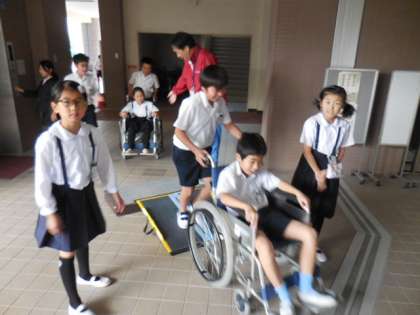 車いすを介助していただく側と介助する側の双方を体験しました。