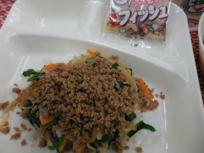 ビビンバは、それぞれの具材の風味を生かすように調理されており、とてもおいしくいただきました。子どもたちからの「おいしかった」の声をいっぱい聞きました