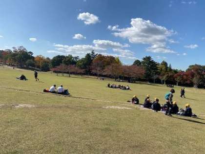 鹿やカラスに注意しながら、みんなで楽しく食べています。