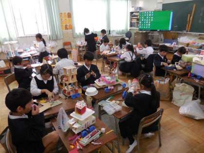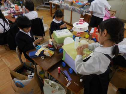 2年生は、作品展に「2年生パレード」という立体作品を出品します。