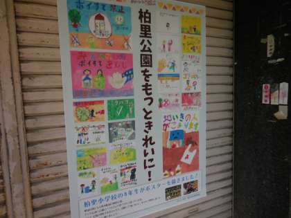 1学期に、地域から駅前公園をきれいにするためのポスター依頼があり、4年生がポスターを描きました。