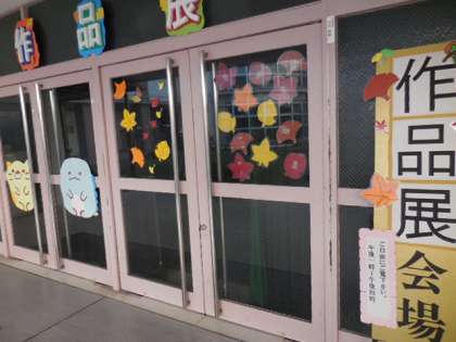 全校児童の絵画作品、立体作品、生涯学習ルームからのパッチワーク、書、写真作品、図書館ボランティア「本の森・としょとしょ」からの展示など、鑑賞していただく作品がいっぱいです。