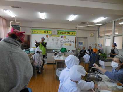 はぐくみネット委員長の北山様、コーディネーターの香川様、学校長からのあいさつ後に調理方法の説明があり、親子クッキングが始まりました。