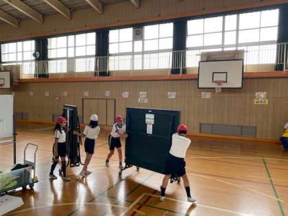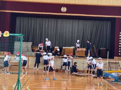 4時間目には、5年生の子どもたちも一緒に体育用具やその他机や備品を片付けたり掃除をしたりしました。