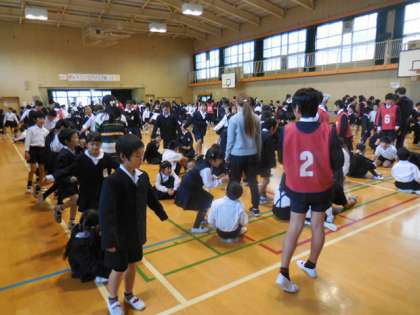 今朝の児童集会は、集会委員会児童によるゲームを講堂で行いました。