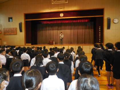 転入児童を温かい雰囲気で迎え、話やお知らせをしっかりと聴いていた子どもたちでした。