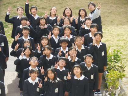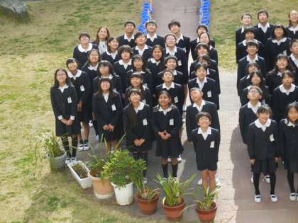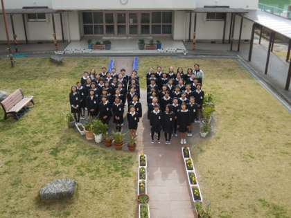 今日は中庭で6年生全体写真を撮影しました。