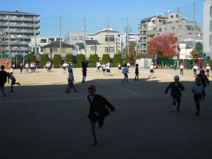 今日は天気もよく、多くの児童が運動場に出て遊んでいました。