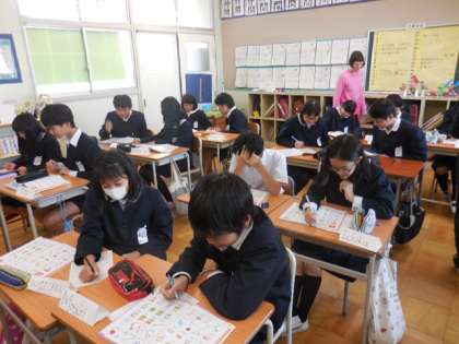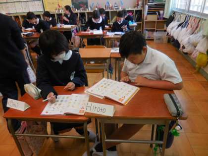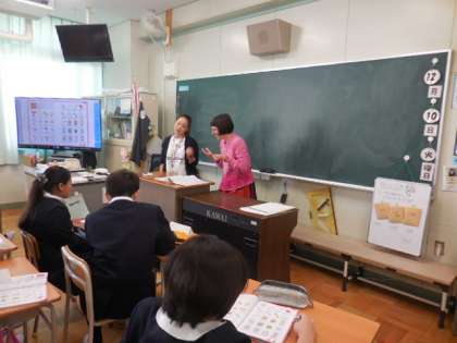 ブランディ先生と担任とが連携して、C-NETの学習を進めていました。