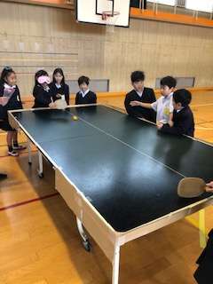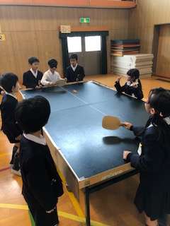 山本さんから盲導犬や介助犬、聴導犬などの補助犬やふだんの生活のようすなどのお話やDVDを視聴した後、目が不自由な方の卓球を体験しました。