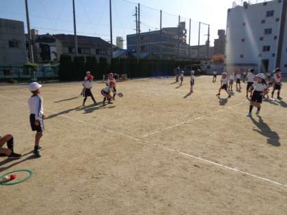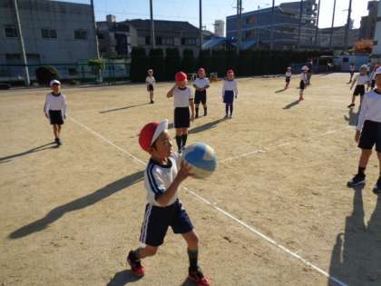 2年生としては、速いボールを投げる子どももいてスリリングなゲーム展開です。