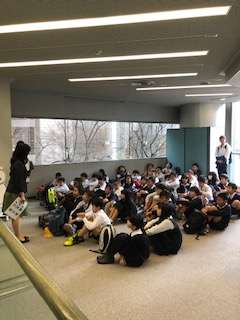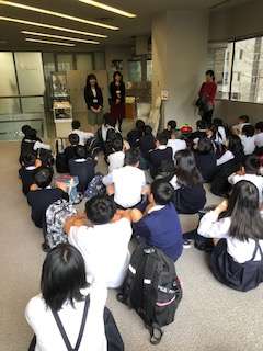 見学についての説明をしっかりと聴いています。