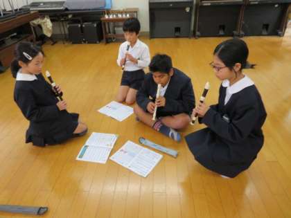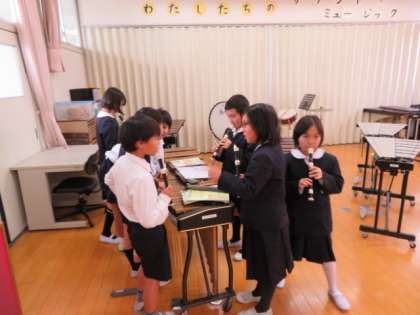 練習を重ねて自信をつけた児童からリコーダーテストを受けていました。