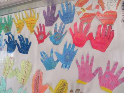 1月の玄関掲示は、4年生が作成しました。