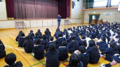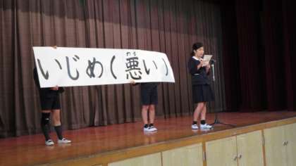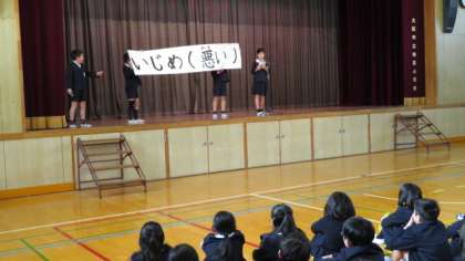 その後、校長からのいじめについての話、生活指導担当からは「柏里小学校の中だけでなく校外にもいじめがあるかもしれないので、いじめをなくすようにしていきましょう」という内容の話がありました。