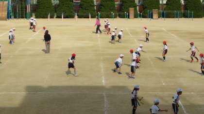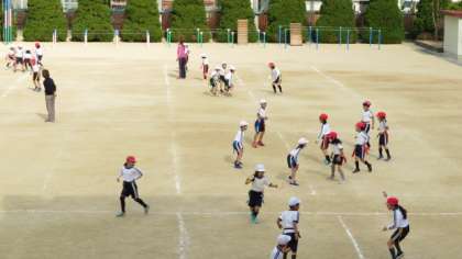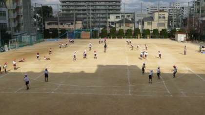 子どもたちは、寒さをものともせずに鬼ごっこの攻防を楽しんでいました。