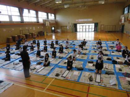担任から、席書会のことについて、各自の席の整え方などていねいな支持がありました。