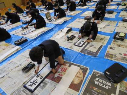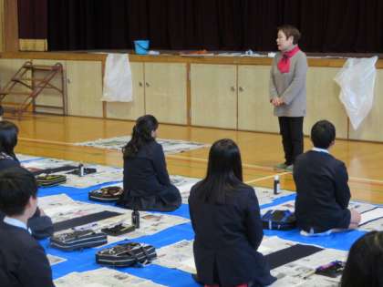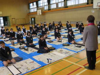 6年生に香川様からごあいさつとして席書会についての心構えなどのお話しをしていただきました。