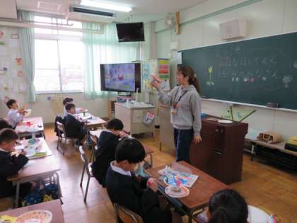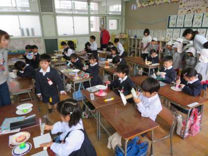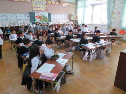 教室の雰囲気にも慣れた園児たちに1年生の学習活動を間近で見てもらったりもしました。
