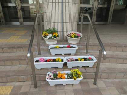 玄関には、早春の花の一つパンジーやビオラも咲いています。