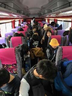欠席が2名いて残念ですが、天候にも恵まれ卒業遠足でまた一つ思い出を重ねます。バスに乗り込んで、いよいよ出発します。