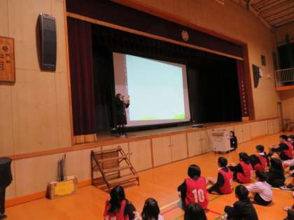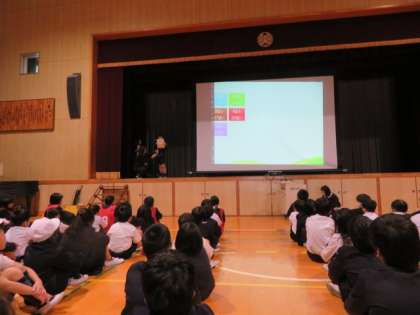 今朝の児童集会は、先日のカルタ大会の表彰が行われました。