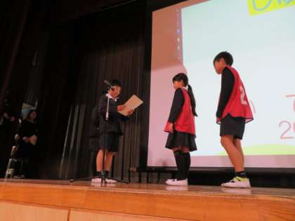 3位から班のリーダーに児童会の担当児童が表彰状を手渡しました。