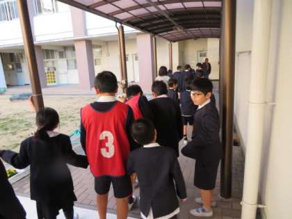 児童集会での表彰が終わって、教室へ戻るときに5年生の新リーダーが1年生を教室まで送ってくれました。