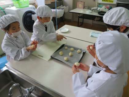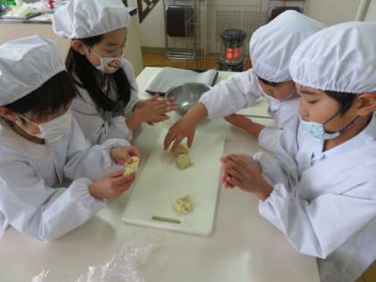 給食、昼休みの時間に発酵させたパンの生地を取り分けました。