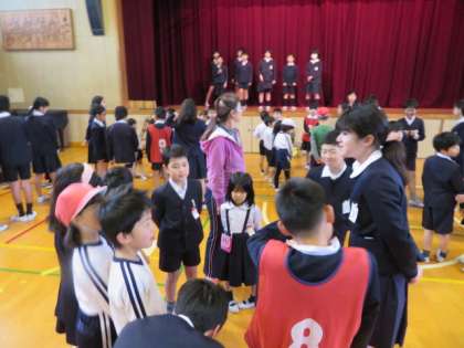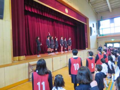 各縦割り班ごとに1年生から6年生まで、しりとりをします。