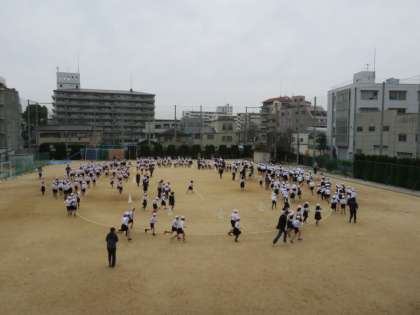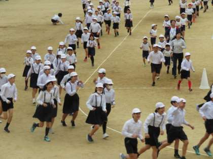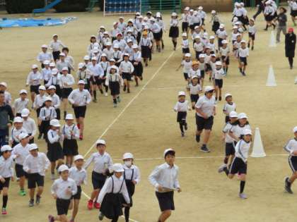 音楽が変わると、それぞれの学級でそろっての駆け足です。