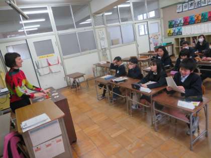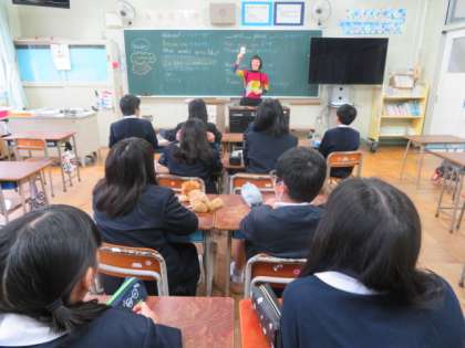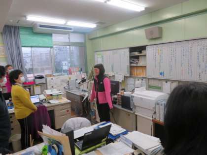 職員室で教職員と離職のあいさつをした後、それぞれの学級ではブレンディ先生と最後の英語活動をしています。