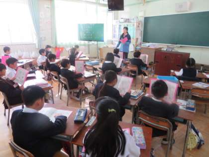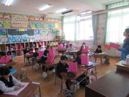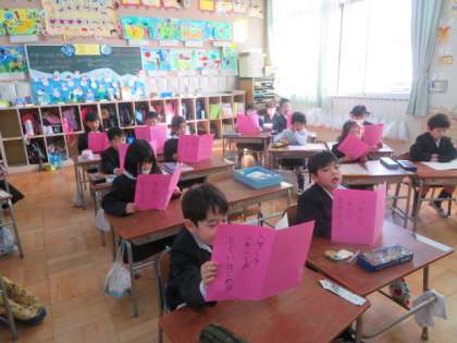 1年生が、来年度入学式に向けて新入生のお迎え演技の練習をしていました。