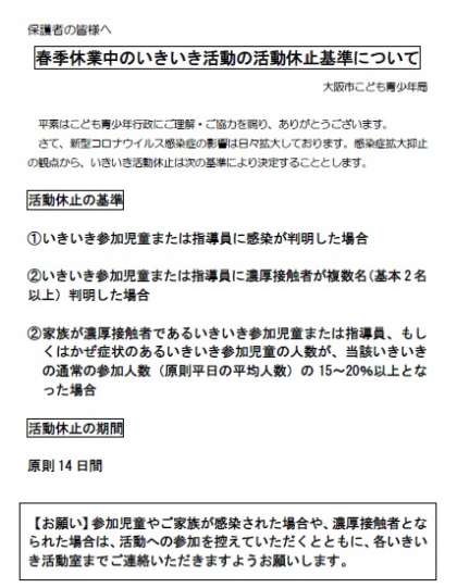 大阪市こども青少年局より連絡がありましたので、お知らせします。