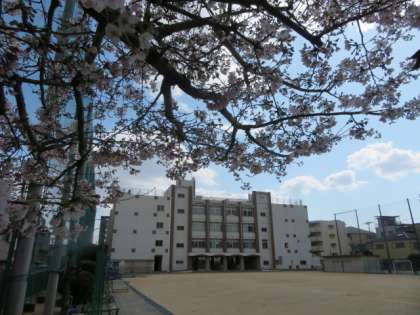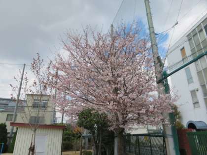 天候は不順ですが、校庭の桜の花は六・七分咲きです。