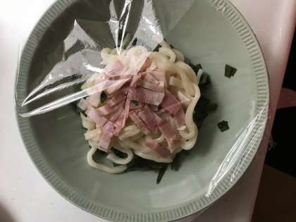 れいとううどん 1たま にら 6ぽん ベーコン 3まい