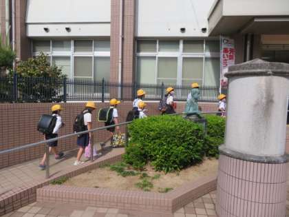 子どもたちは、密にならないよう気をつけて登校してきました。
