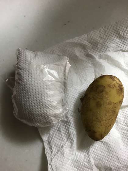 1.じゃがいもをあらい、クッキングペーパーでつつみ、そのうえから