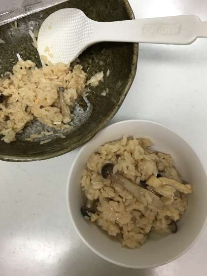 2.おこめのうつわに、あらってみずをきったしめじ、あげ、しょう
